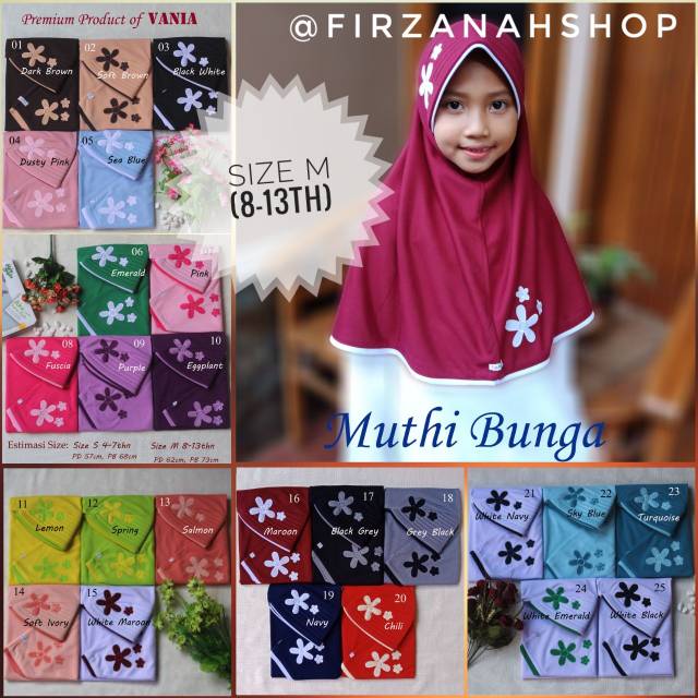 Harga [8-13 th] Jilbab anak Vania eksklusif Muthi Bunga Premium size M