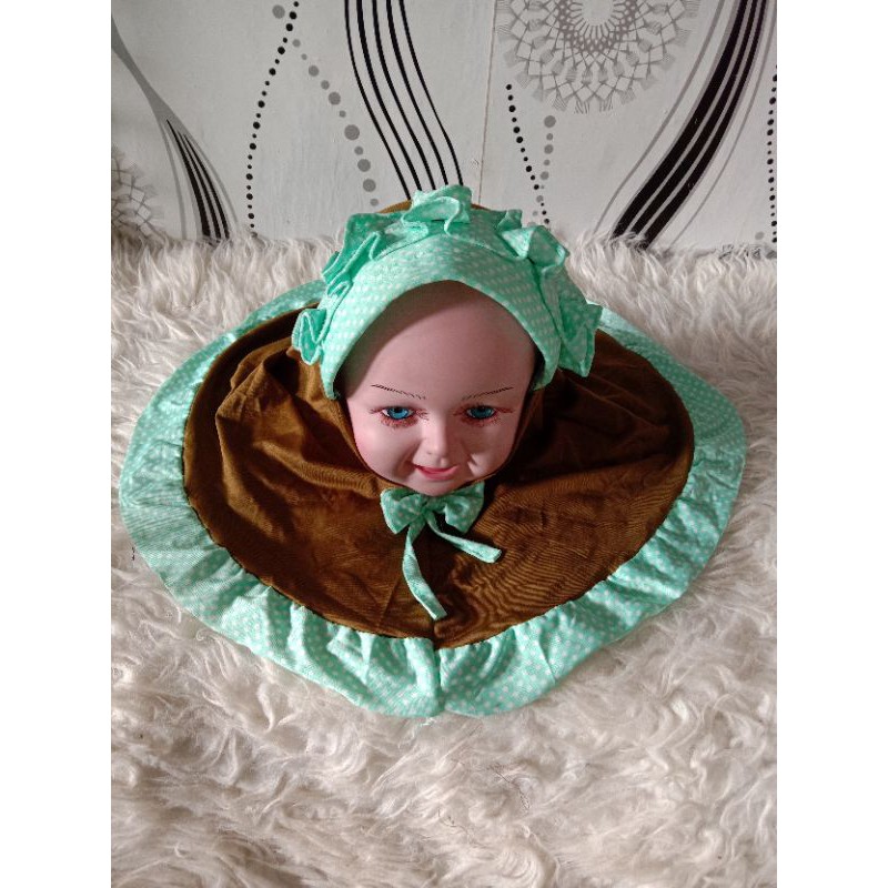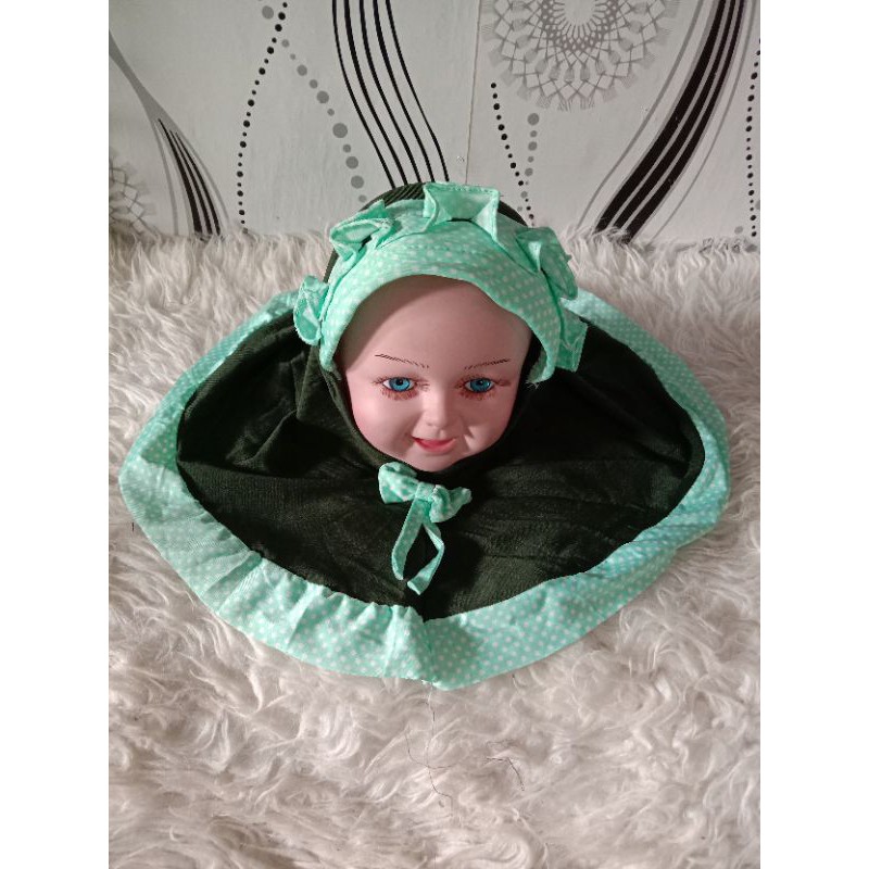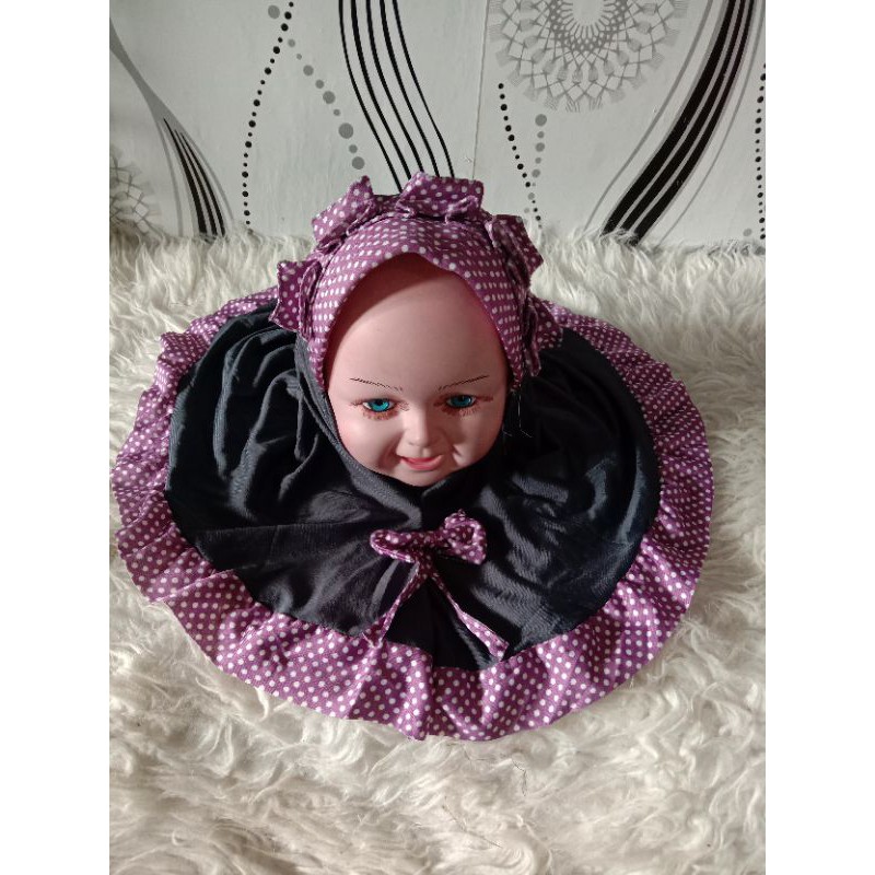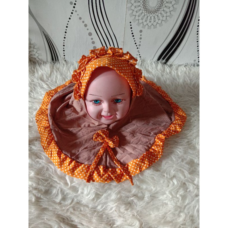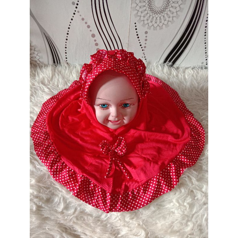 Harga AM | Jilbab Bayi | Jilbab Anak Pet Kriwil Polkadot Pita Depan usia 0-2thn