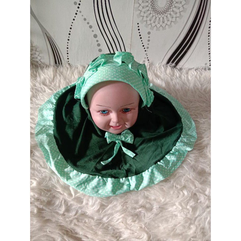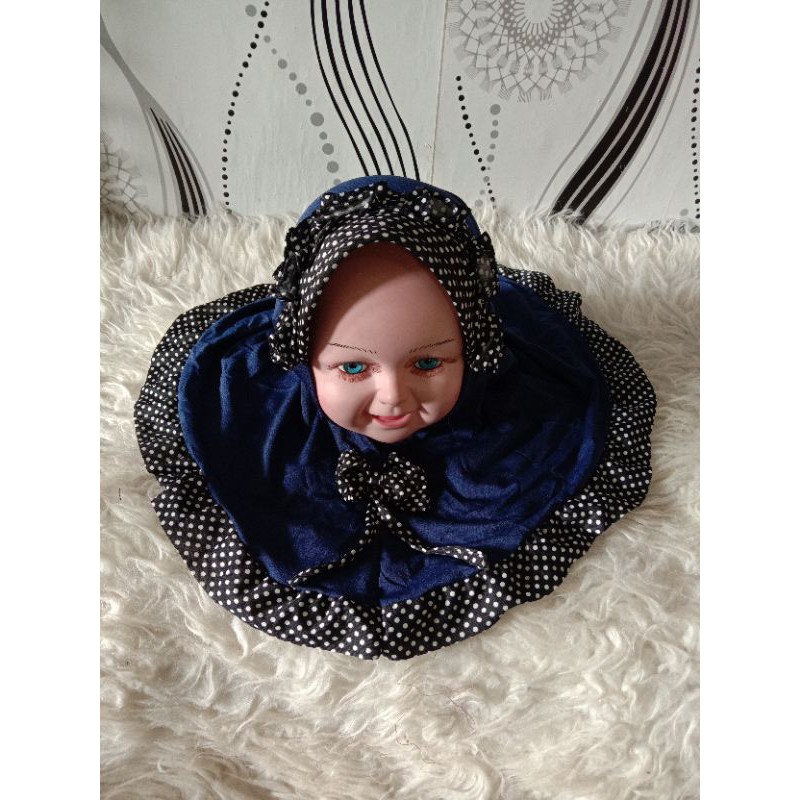 AM | Jilbab Bayi | Jilbab Anak Pet Kriwil Polkadot Pita Depan usia 0-2thn