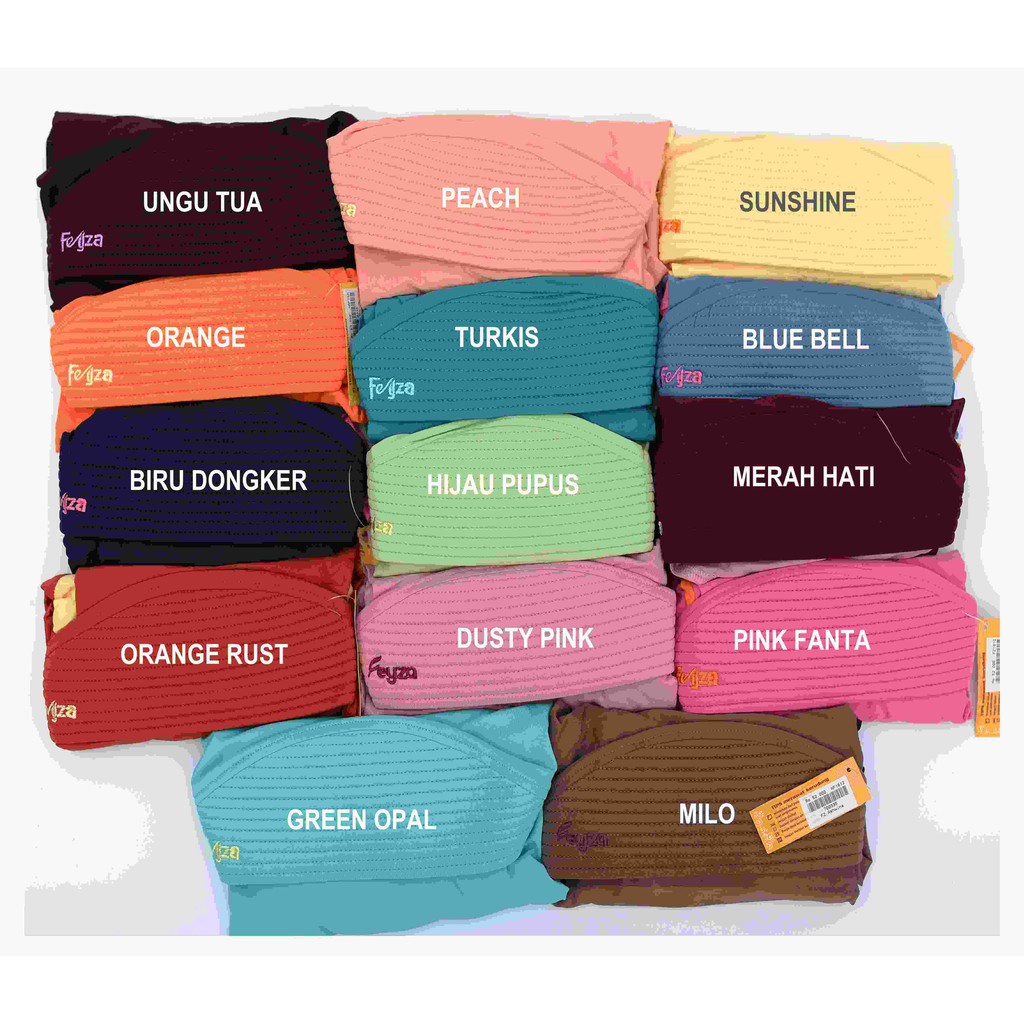 Produk ini memiliki 15 Variasi Varian yaitu : Blue Bell,Putih,Sunshine,Turkis,Dongker,Orange Rust,Ungu Tua,Hitam,Cokelat Tua,Merah Hati,Ungu Soft,Broken White,Clear Water,Orange Peel,Ungu Muda,