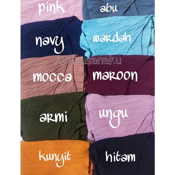 Produk ini memiliki 20 Variasi Warna yaitu : Navy,Kunyit,Wardah,Coksu,Merah,Ungu lilak,Armi,Abu muda,Abu tua,Pink nude,Hitam,Grosir 5pcs klik 5X,dusty ungu,hijau botol,maroon,mocca,dusty pink,Pink,Caramel,Ungu,