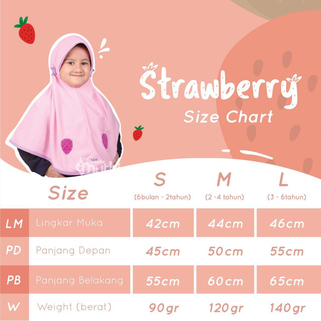 Kekurangan - Kekurangan membeli Size L [3-6th] Jilbab Anak TK motif Strawberry by Vania Muthi bahan Kaos Premium di Toko ini